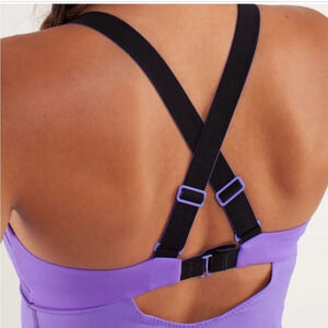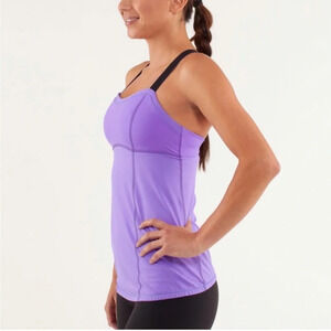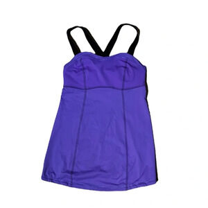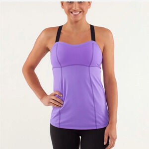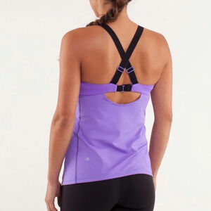 Lululemon catch me purple black criss cross straps built in bra tank top Sz s