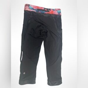 Lululemon chase me crop leggings multicolored rose pattern and black size small.
