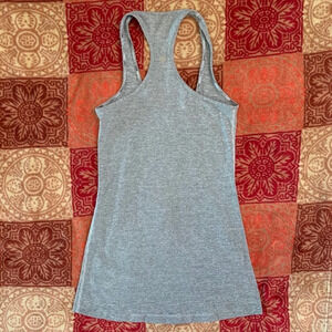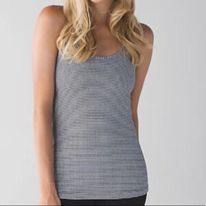 Lululemon cool raceback tank ,heathered coal we stripe, size 2, no tag , lululemon logo peeling otherwise good condition measures pit to pit 11 inches, waist 11” inches,