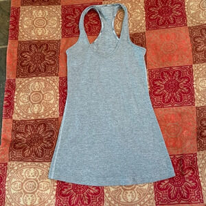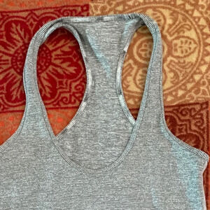 Lululemon cool raceback tank ,heathered coal we stripe, size 2, no tag , lululemon logo peeling otherwise good condition measures pit to pit 11 inches, waist 11” inches,
