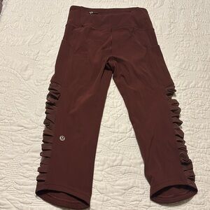 Lululemon cropped sheer rouched leggings brown size 2