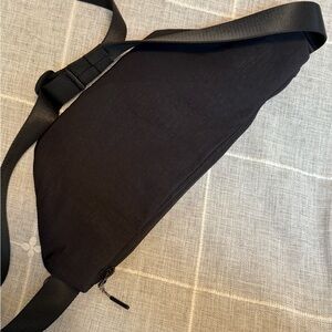 Sleek black belt bag with adjustable strap. Perfect for on-the-go convenience. NEVER USED.