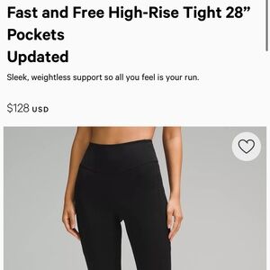 Well taken care of lululemon fast and free high rise leggings with pockets 28”