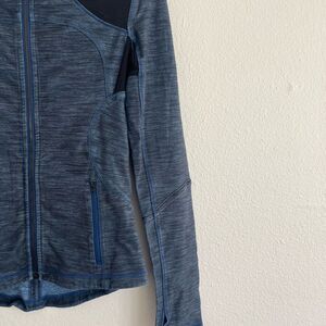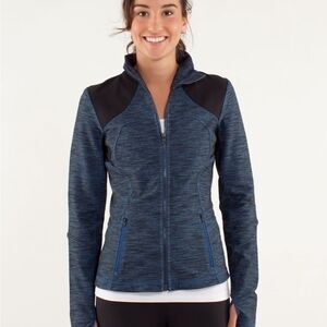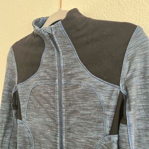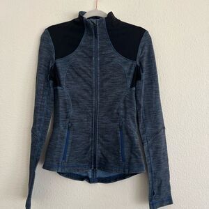 Lululemon forme jacket in slub denim blue and black size 6 with thumb holes