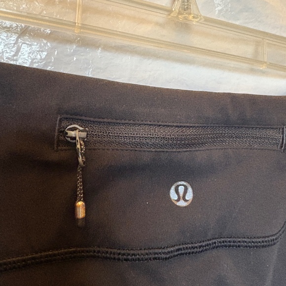 Black lululemon tights. Full length with ruched leg. Back pocket. Daughter cut tags out (sorry).