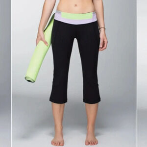 Lululemon gather and crow crop, color black/quilt spring 14 16, size 6, good condition
