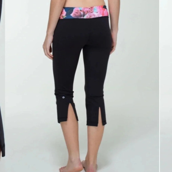 Lululemon gather and crow crop, color black/ secret garden, size 6, in good condition,