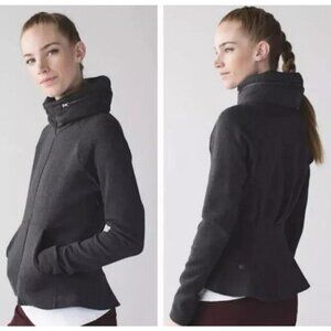 Lululemon &go Destination Heathered Black Gray Hidden Hood Hoodie Jacket - soo comfy! Designed for: to-and-from