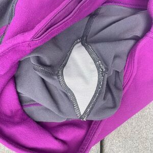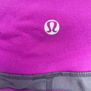 Lululemon gray & purple cropped leggings . Luon. Size 4. Inseam 20” Smoke free / pet friendly home. Had these for years and they are in great pre-owned condition . No tears / rips or pilling 💜