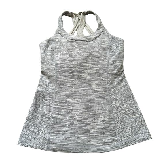 Lululemon gray & white striped cross-strap sleeveless tank top size 6
