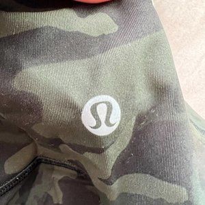 Green camo print wunder under cropped leggings by lululemon. In great pre-worn condition, minimal pilling. Size 4.