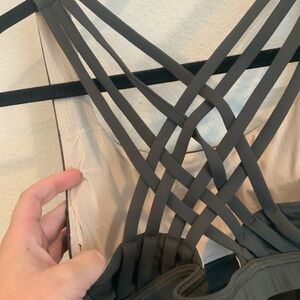 Lululemon green & gold straps bra tank top size 4 with sports bra built in with cups