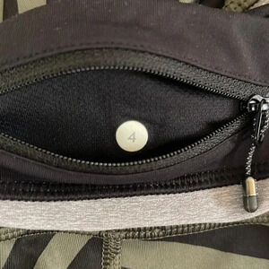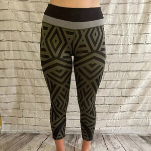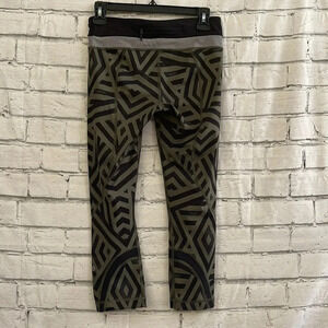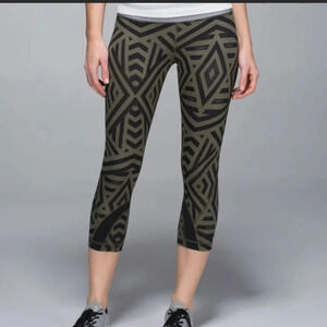 Women’s. Lululemon. Black/army green geometric print leggings. Cropped. Near perfect condition. No flaws/stains/tears. Size 4.