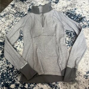 Stay comfortable and stylish with this women's gray quarter-zip top. Perfect for any casual outing or workout session.