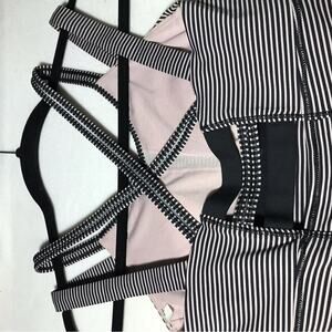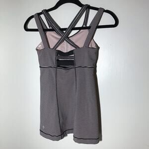 Lululemon happy strappy criss cross tank top 4 pink black striped athleisure