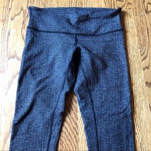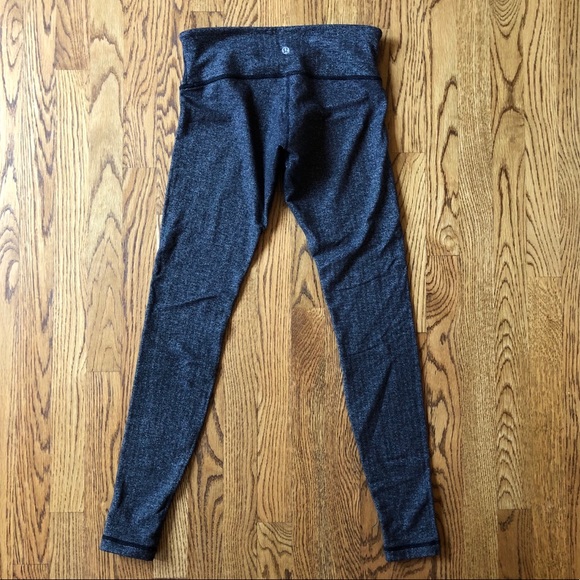 Great condition (worn about 10 times) lululemon leggings in a beautiful herringbone charcoal gray color that I don’t believe they make any more. These are warm and are great winter leggings. They are full-length.