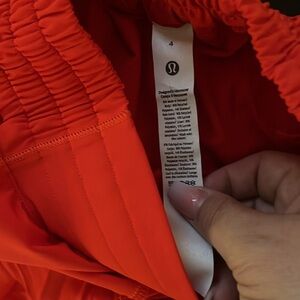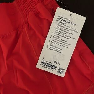 Red Lululemon size 4 hotty hot high rise 4” lined shorts. NWT. Color hot heat!