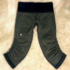 Lululemon in the flow seamless black & army green crop leggings. NWOT! Sz 2. NEW