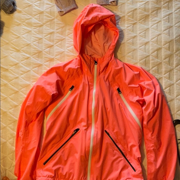 Worn once. So cute and comfy. Has vents in the size to get extra air flow. Orange/ pink color