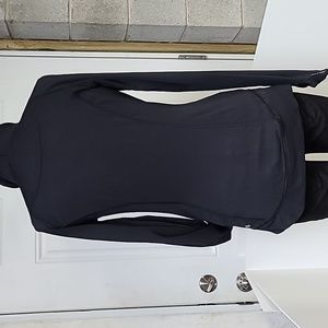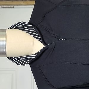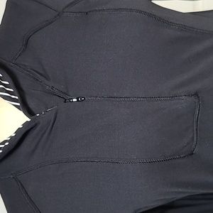 Spandex jacket Pool on. Black and white striped collar with a short zipper