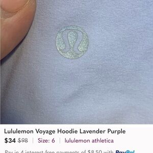 EUC-Lululemon Voyage Hoodie in periwinkle color. Stretch French Terry hoodie to keep us cozy to and from home, work and the studio (Terry fabric contains LYCRA® for shape retention).