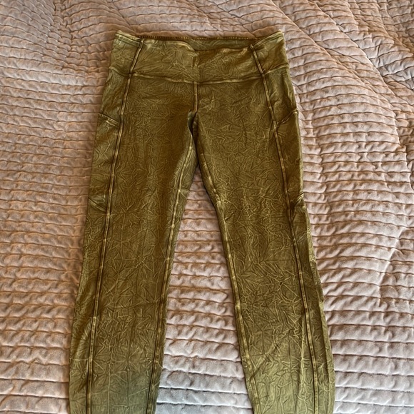 7/8 leggings with crinkle dye material. Soft and buttery. Excellent used condition, like new! Side pockets.