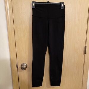 High waisted lululemon leggings. No size dot but measurements included. Inseam is 25” - thinking these are a size 4 or 6. Color is black. From a pet friendly home