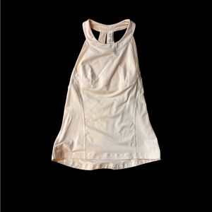 Stylish light pink racerback tank top. Perfect for workouts or casual wear.