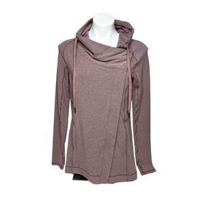 Lululemon mauve coast easy wrap jacket size 4. Body 92% modal 8% elastane. Lining 95% cotton 5% elastane. Mesh 89% nylon 11% elastane. Length 27” Chest 18”.