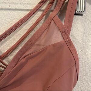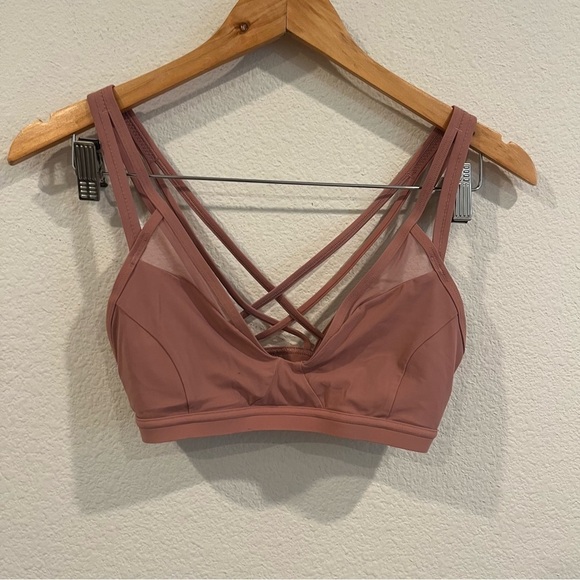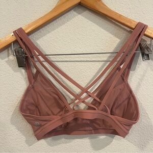 Lululemon mauve pink v neck sports bra mesh trim strappy back size 4