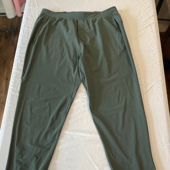 Lululemon men's yoga pants in olive green size large. Designed with premium stretch fabric for comfort, flexibility, and performance. Ideal for yoga, training or casual everyday wear. Features Lululemon's signature quality, sleek design and a flattering athletic fit. Soft, breathable material with excellent shape retention - perfect for balance of comfort and style Excellent pre-owned condition.