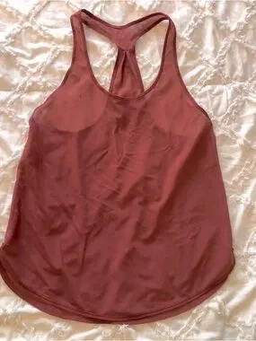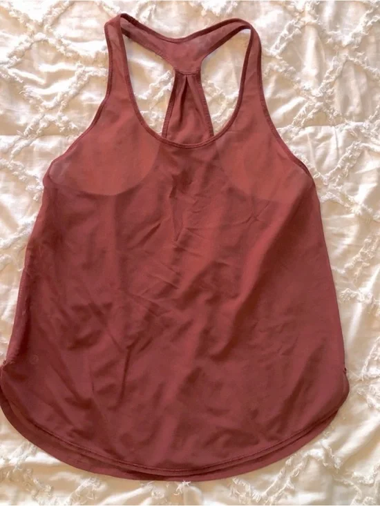 Lightweight racerback tank with a scooped neckline. Smooth, breathable fabric for easy movement. Curved hem for layering versatility. Designed for workouts or casual wear.