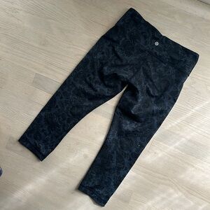 Lululemon navy black paisley wunder under cropped leggings size 6 lightly worn