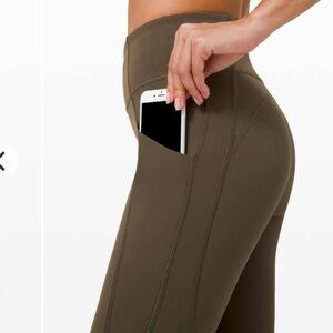 Lululemon olive green Time to Sweat crop leggings tights reflective 23” 8