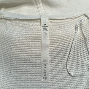 Excellent condition cream colored cardigan with no flaws. This hooded cardigan measures approximately 26 inches long.
