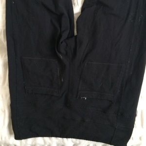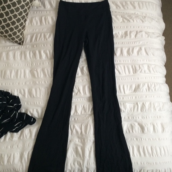 High waisted, long, very stretchy, only flaw is that on the back pockets the pants have little white balls that an easily be removed with a razor