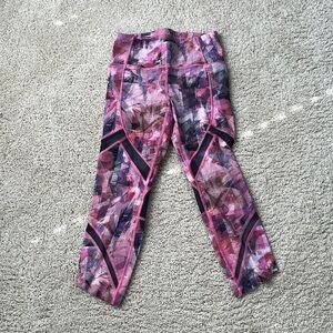 Excellent condition crop leggings by Lululemon and size 4. Back pocket and side pockets. Mesh panel detailing on front and back. Excellent condition. Smoke-free home.