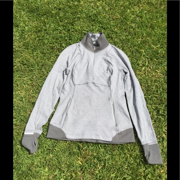 Grey/white Lululemon pull over jacket. In good condition. No pilling.