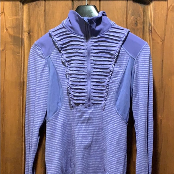 Cute and different lulu pullover! Perfect to spice up your workout attire! This shirt has been worn and has a small amount of pilling. Overall, in great condition
