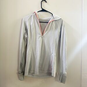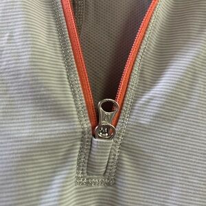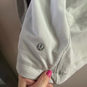 Lululemon race with grace half zip jacket. Gray striped jacket. Size 6. Excellent used condition