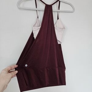 Lululemon top. Flow Y long line 2 in 1 racer top. Garnet pink in color.