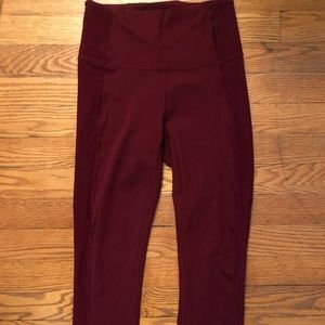 Very soft, tight, cute leggings. The have 3 pockets at the waistband, and have a cute polkadot mesh accent at the sides. Only worn twice.