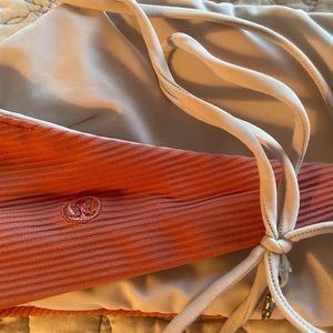 Really cool reversible lululemon pink and white bikini. Trendy design with the square neck and spaghetti straps. Really nice cut on the bottoms. For fun in the sun! Quality material. Only used a few times. Both size 12
