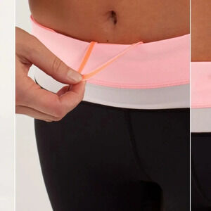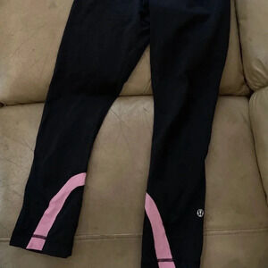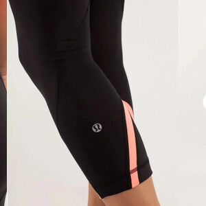 Lululemon run inspire crop 11, color black/bleached coral/ dune / size 4, material power luxtreme circle mesh , in good condition
