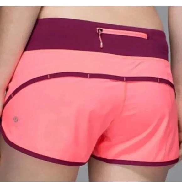 Lululemon run speed shorts4 way strech, color maroon/peach, size 2, in good condition