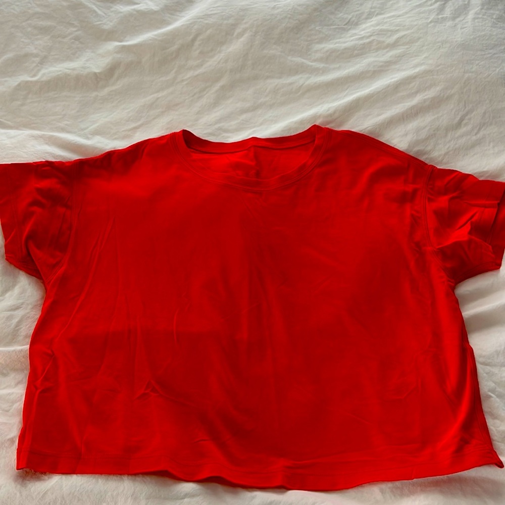 Lululemon size 4 cropped tee, not as red as in the photo good condition