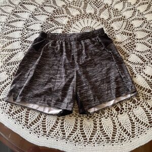 Lululemon shorts black and grey pattern, size XL, good condition, no rips or flaws