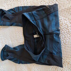 Adorable sassy striped leggings. Blue and black stripes, with nice black cutout areas to accentuate your form! Also has a pocket. Who doesn't love pockets?!