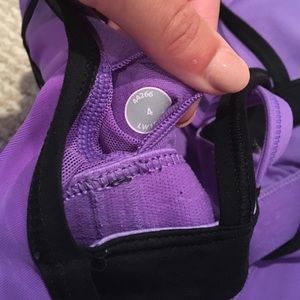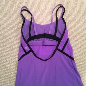Unique. Size 4. Purple and black lululemon tank. Fun back and great fitting workout tank! Cups included.