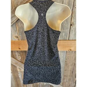 Lululemon size 8 (?) Black textured floral tooled seamless tank top EUC active